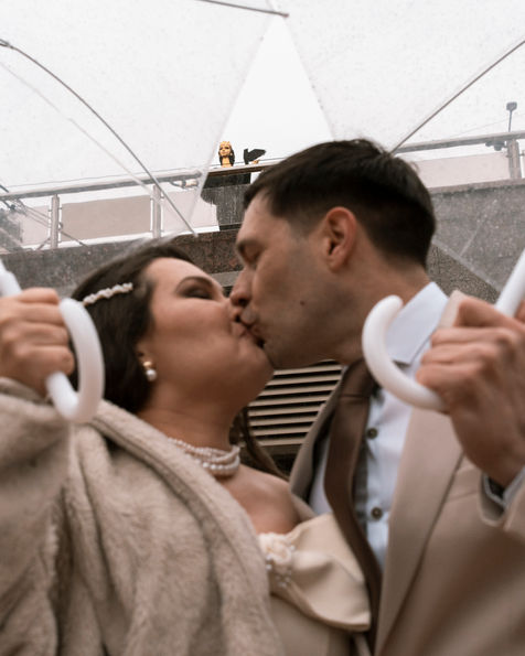 Дияна и Димитър не се уплашиха от времето. Напротив — под прозрачните чадъри и върху мокрите улици на стара София, те вплетоха своята любов в една градска поема. Между гълъбите и шепота на дъжда, те не позираха — те живееха, обичаха, смяха се.